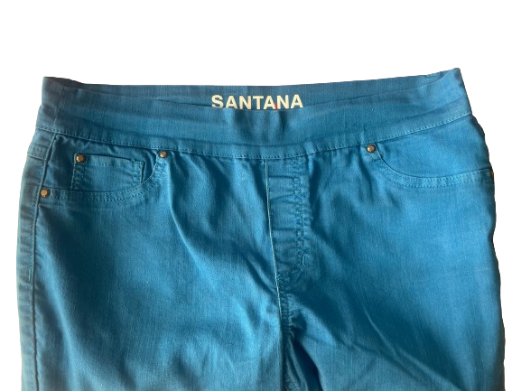 Effortlessly stylish and comfortable, these secondhand Santana Jeans Blue Stretch Pull-On Capris are a must-have for any wardrobe. Made with stretchy fabric, these capris provide the perfect fit and allow for easy movement throughout the day. The beautiful blue colour adds a touch of sophistication to any outfit. Upgrade your style game today!