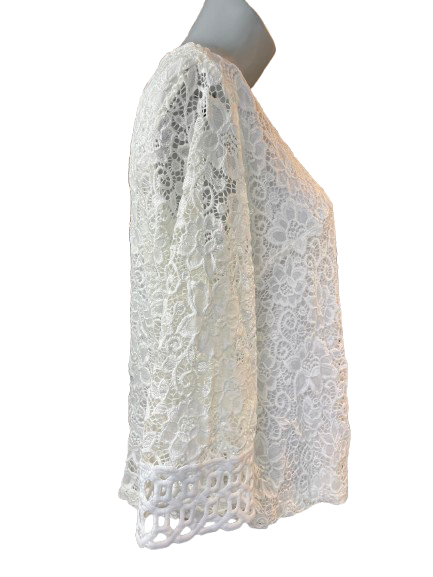 Elevate your wardrobe with this Tanjay White Lace Overlay Petite Blouse! This beautiful blouse exudes elegance and sophistication, perfect for any occasion. The delicate lace overlay adds a touch of femininity while the petite size ensures a perfect fit. Transform any outfit into a statement with this timeless piece.
