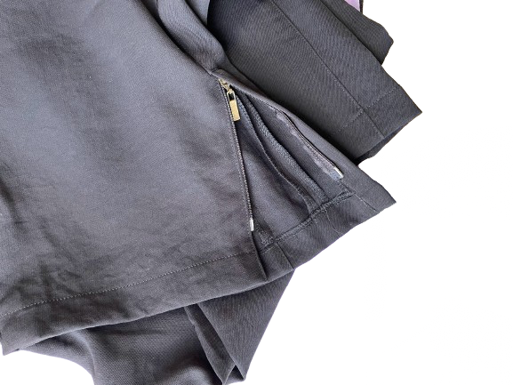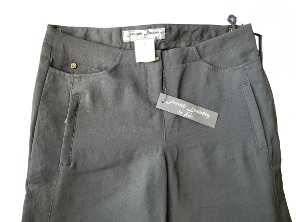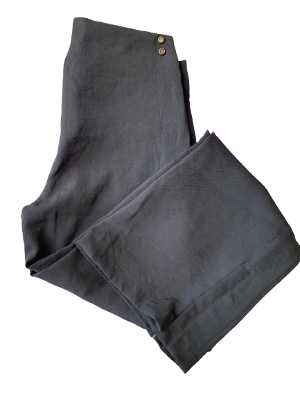 These luxurious French Laundry By Neto black dress pants elevate any outfit with their elegant decorative buttons. Perfect for a night out or a professional event, these pants exude confidence and sophistication. Elevate your wardrobe today with these statement trousers!