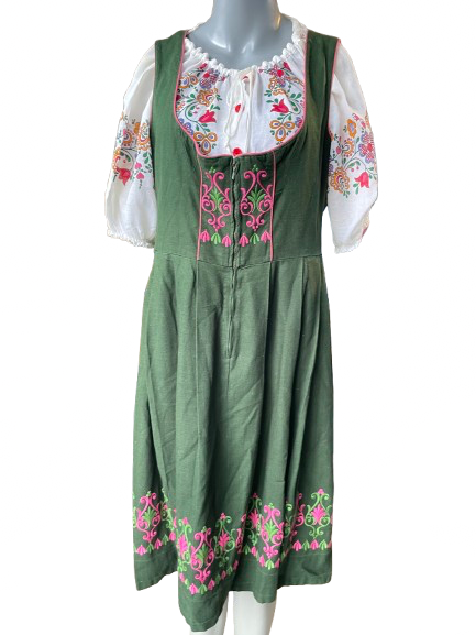 Get ready to dance and delight in this German Dark Green Dirndl Dress! This traditional German folk dress will have you twirling with joy at your next Oktoberfest. Cheers to feeling festive and fabulous! 🎉