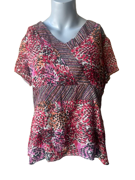 • JM Collection Red Mixed Print Short Sleeve Blouse