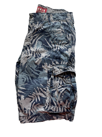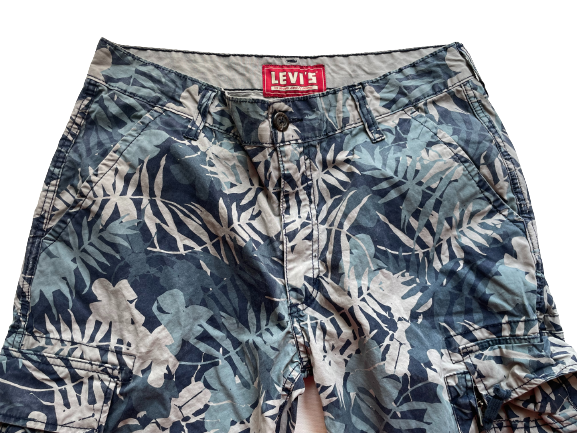 Transport all of life's necessities with Levi's Men's Blue Tropical Slim Cargo Shorts. Featuring lots of pockets 🕳️and crafted from 100% cotton, these stylish shorts boast a vibrant tropical print 🌴 to keep you looking sharp.