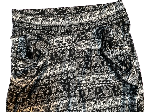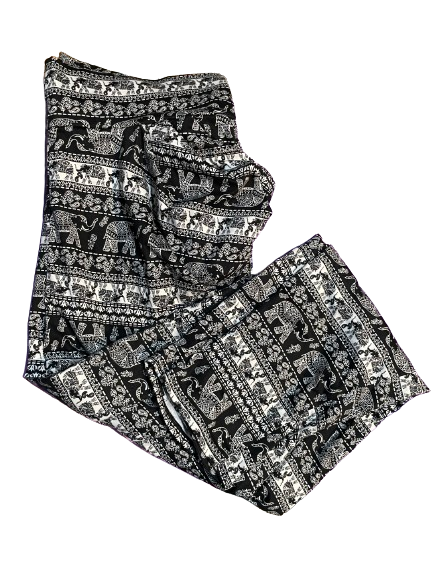 Don't let life's moments pass you by, snag a pair of these thrifted Life's Short Black Elephant Print Slouch Pocket Leggings. Made with ultra-soft material, you'll never want to take them off! 🐘