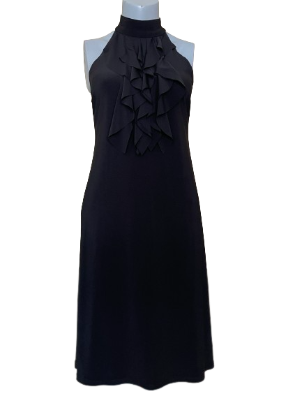 The MSK Black Halter Ruffles Dress is crafted with a halter style 🔗 and intricate ruffles 💃 that add stunning movement and flow to your look. The lightweight fabric allows for easy wear and movement.