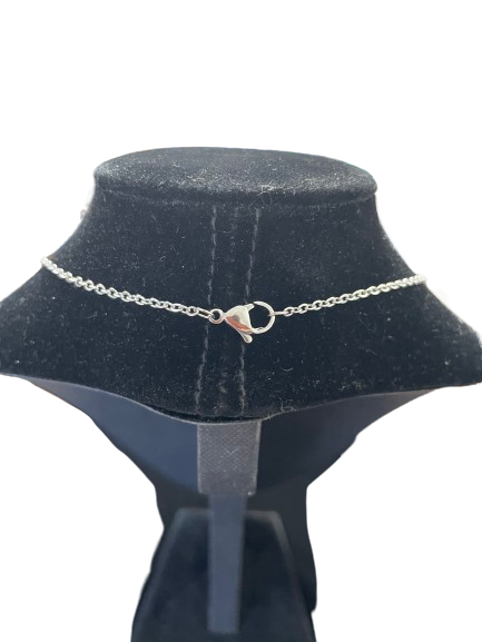 • Silver tone chain with lobster clasp