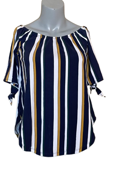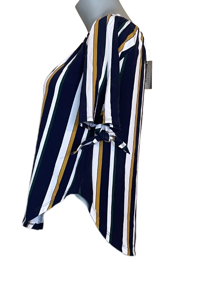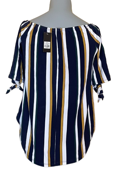 Hit the streets in style with the Streetwear Society Navy Striped Short Sleeve Top! This trendy top features stylish stripes and a unique twist with its tied sleeves, so you can take your look to the next level! Rock it with your favorite jeans and sneakers for a casual yet edgy vibe. Streetwear, let's do this!