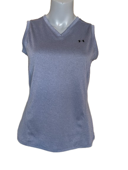 This Under Armour Blue V-Neck Sleeveless Active Top is perfect for your active lifestyle. It is made with breathable fabric to keep you cool and comfortable as you move. 🏃♀️🏃♂️ With its sleeveless design and v-neck fit, you can stay active in style. 💪