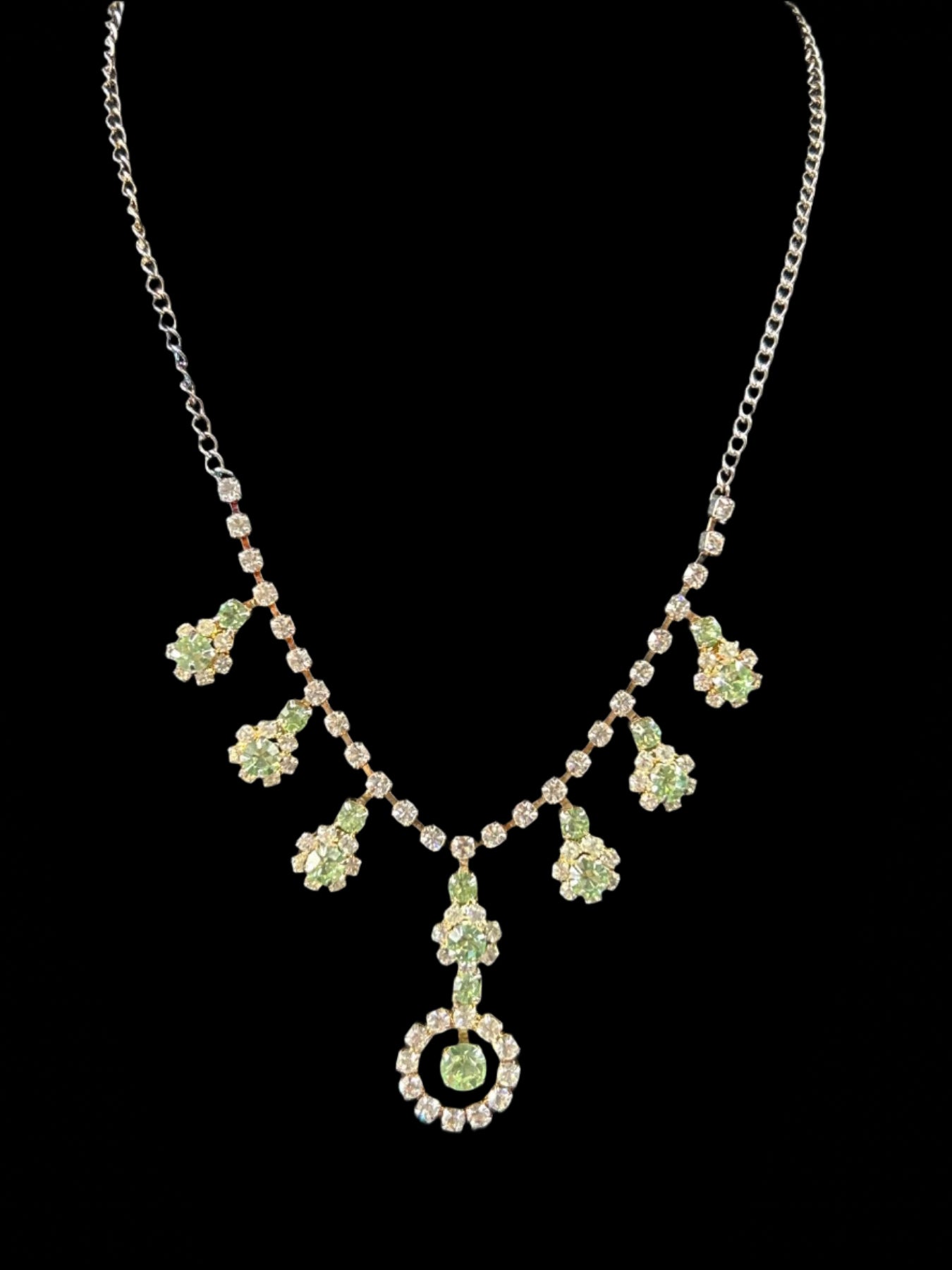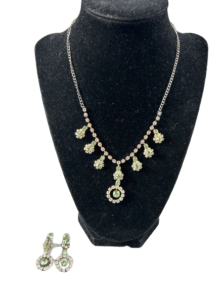 Indulge in luxurious vintage elegance with this Vintage Green Rhinestone & Earrings Set. The dainty and sophisticated design features delicate rhinestones in a stunning green hue, perfect for adding a touch of exclusive charm to any outfit. Elevate your style with this exquisite set. ✨🌟
